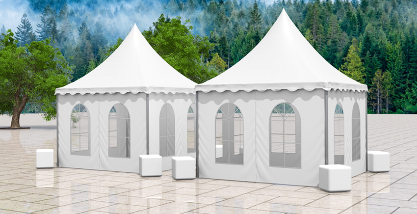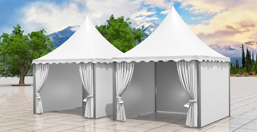 尖頂篷房有多種可供選購(gòu)的配置,例如:玻璃墻體、玻璃門、地臺(tái)板、布幔內(nèi)飾等。尖頂篷房除了單獨(dú)使用外,還可以將它用排水槽連接起來組成更大的面積,形成多樣的造形,在戶外活動(dòng)應(yīng)用中更加精彩。