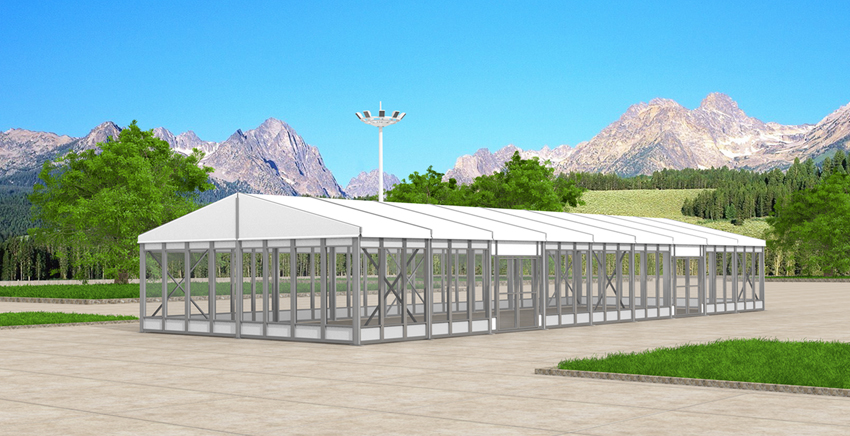 屋脊篷房系列品種繁多,提供從6米到50米的多種跨度。屋脊篷房采用模塊化設計,篷房長度可按3米或者5米的倍數延長。屋脊篷房采用高強度鋁合金型材(6061-T6)作為主框架,外圍采用PVC刀刮涂層布做圍擋。此外,屋脊篷房高適應性的特點,可以讓它融入各種建筑特色,也可以與同類產品,如:如尖頂篷房、多邊型篷房等組合使用。