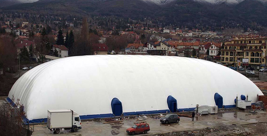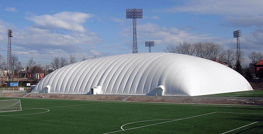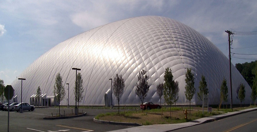 氣膜建筑是用特殊的建筑膜材做外殼,配備一套智能化的機電設備在氣膜建筑內部提供空氣的正壓把氣膜建筑主體支撐起來的一種建筑結構系統。