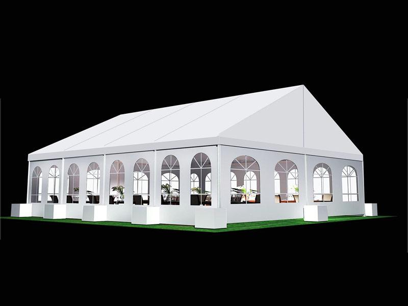 選擇可移動的篷房作為臨時建筑使用,重要的一點是:安全保證。目前行業內使用廣泛安全系數高的就是鋁合金篷房,它抗風阻燃,空間利用率高。