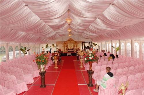 在舉辦婚慶的時候,一定會用電。一般篷房廠家是不提供線路支持的,可是專業的篷房廠家會提前考慮到線路問題,確保線路能夠安全使用。