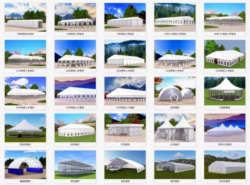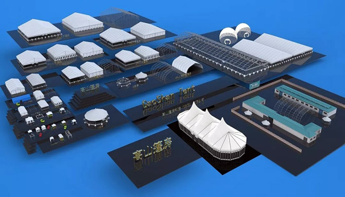 高山篷房全系列備貨豐富,統一標準,部件通用,隨時調配搭建,以上各類使用場景,均可迅速建成環保建筑。