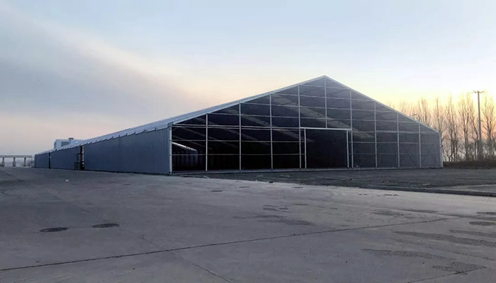 這些問題,對于高山環保篷房來說“都不是事”——首先高山環保系列篷房的跨度可以根據需要做到50米以上,邊高在15米以上,頂高20米以上,可以開口安裝巨型大門,吊車、重卡等大型裝備輕松進出。更寶貴的是內部無梁無柱,盡可輾轉騰挪,大大提高工作效率。