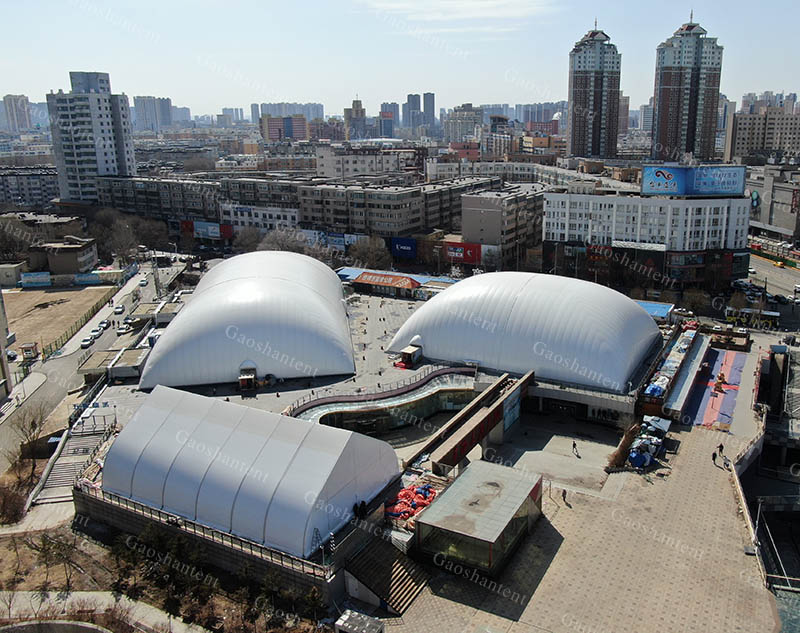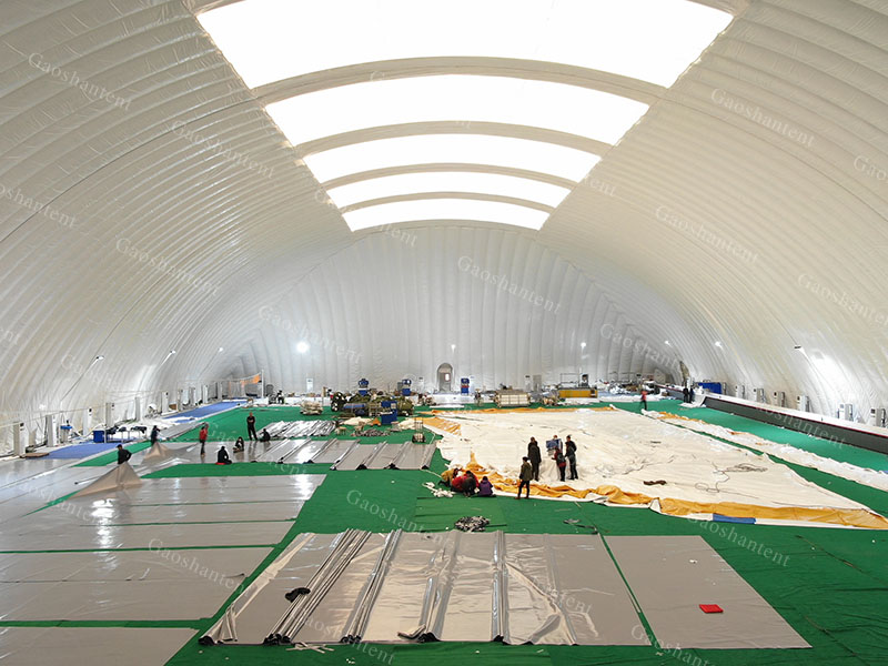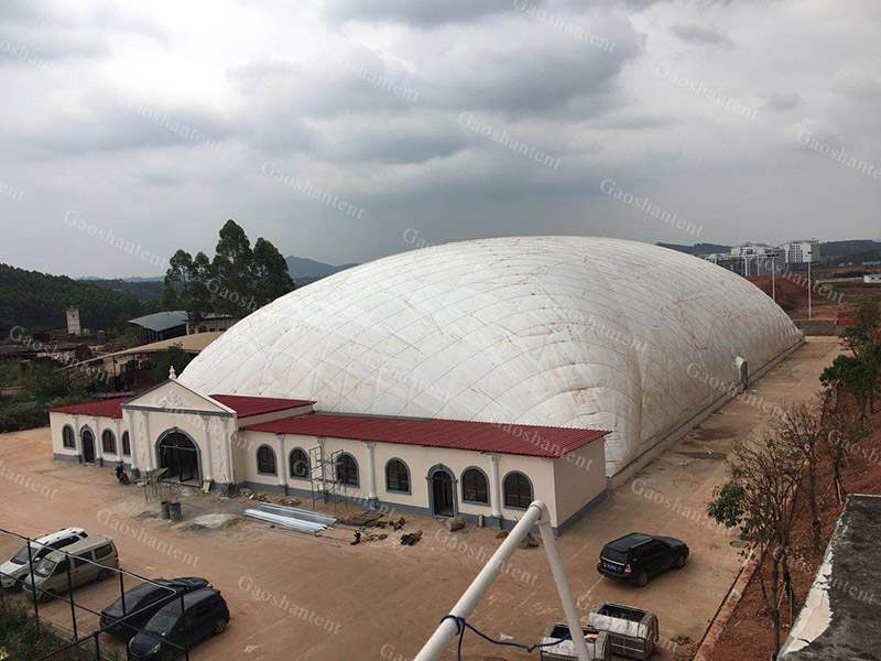 倉庫封閉,環保覆蓋,常用是磚瓦結構或者是鋼結構,傳統建筑的缺點是工期長,審批難,造價高,移動難,做地基等問題,現有高山氣膜生產的新型鋁合金結構以及充氣膜結構,優點明顯,具體如下。