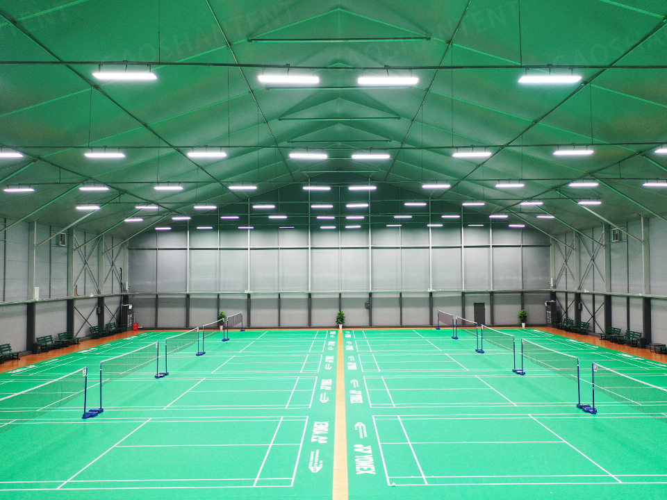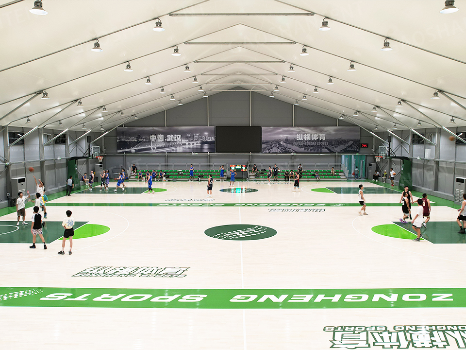 館內設施齊全,配備專業照明系統和空調系統,頂部篷布加棉設計保溫隔熱,顯著降低空調負荷。弧形設計外觀現代大方,邊高達7.5米,為球類運動提供充足空間。
