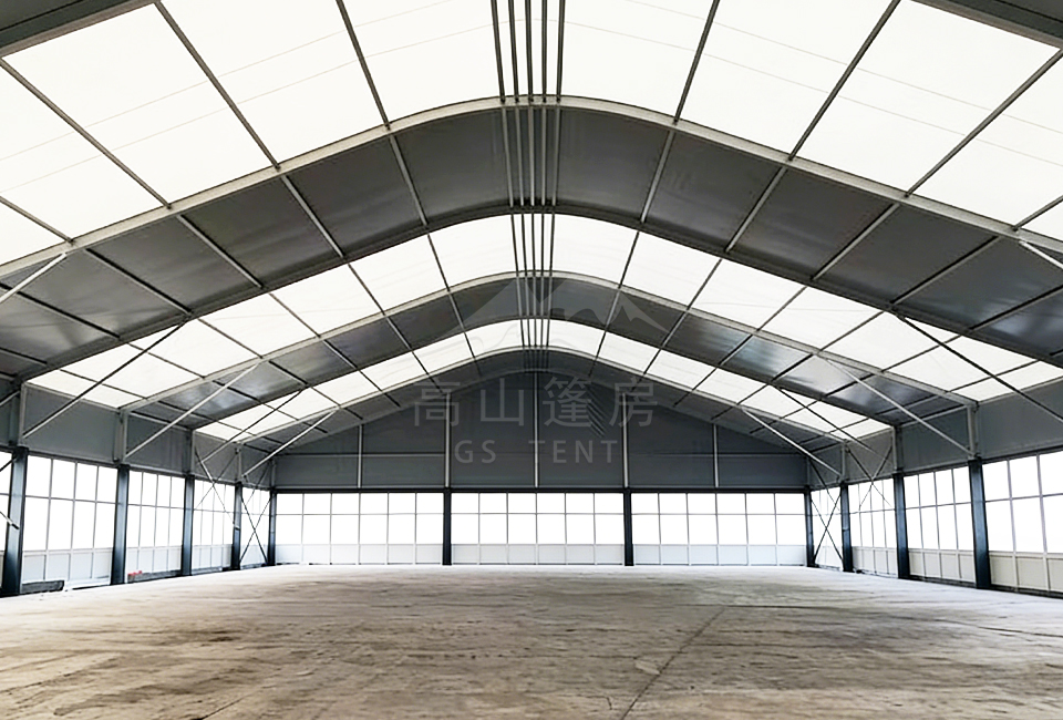 其內(nèi)部采用無柱大跨度設(shè)計,最大跨度可達60米以上,超大空間利用率,視野開闊無遮擋。長度可按需求無限延伸,更可根據(jù)具體用途靈活劃分內(nèi)部功能區(qū)。這種與生俱來的靈活性,使其能夠輕松適配從展覽展會、倉儲物流到體育賽事、臨時車間等幾乎所有的臨時或半永久性空間應(yīng)用。