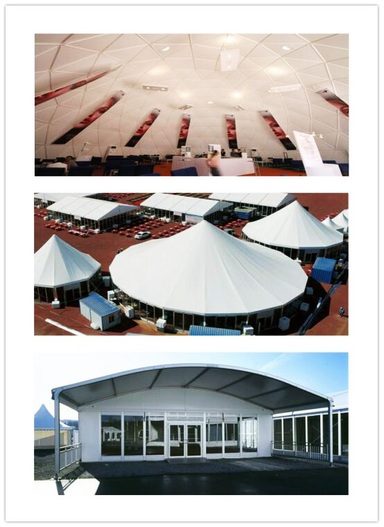 高山擁有多種可供選購的配置,可使其功能和用途得到進一步擴展,常見配置有帶透明窗的邊墻布、天花內飾、圍幔頂幔、玻璃幕墻、玻璃門、ABS硬體墻、全透明篷布和邊墻布、地板系統、照明系統、空調等。高山篷房擁有多年車展大篷服務經驗,不僅為組委會提供一站式服務,并且為供應商提供多個適應性建議和有價值資源。