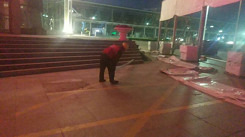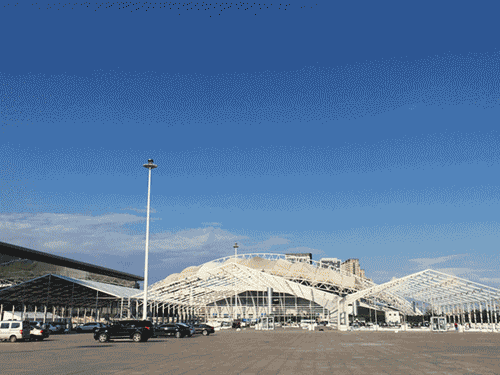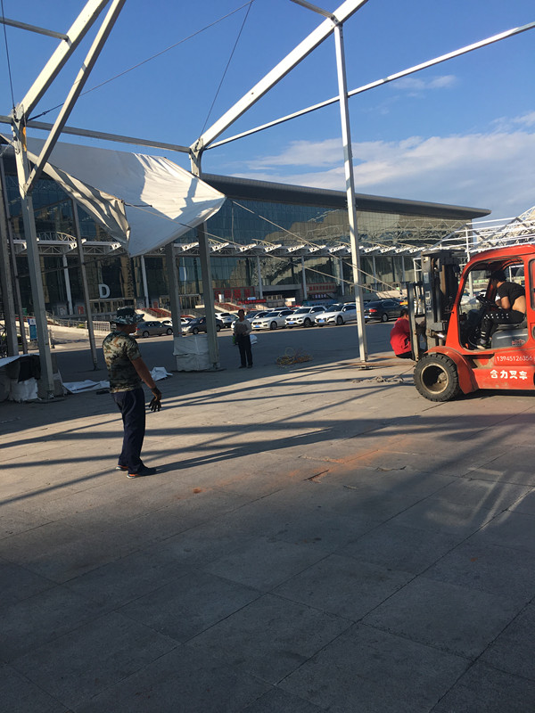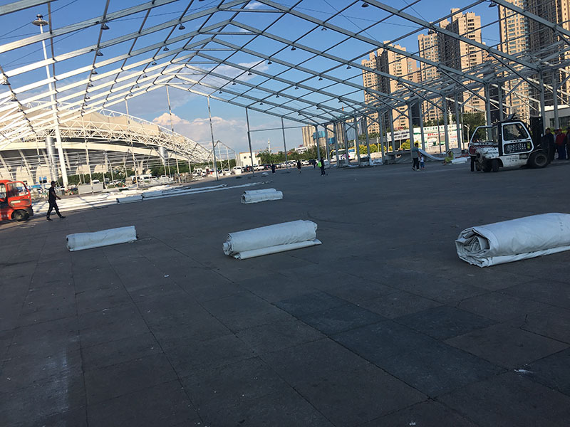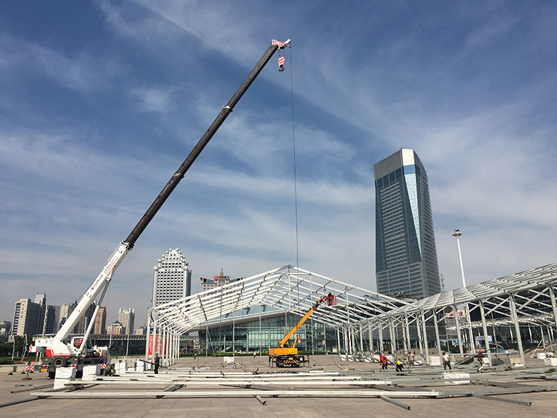 篷房規模大,同樣,吊車規格也要大,高山工人告訴小編,在這過程中絲毫不能松懈,不容許有一丁點的失誤。