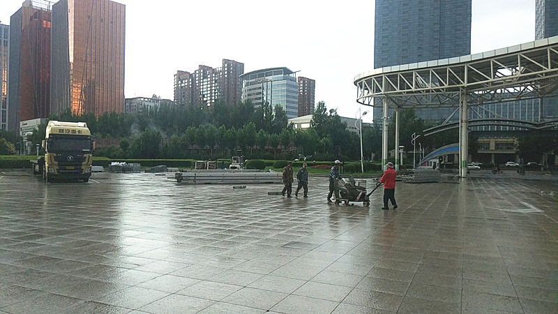 不怕雨淋——凌晨五點,天還未亮,便下起雨,高山工人冒雨施工,這點小雨算什么,用熱情澆滅它!