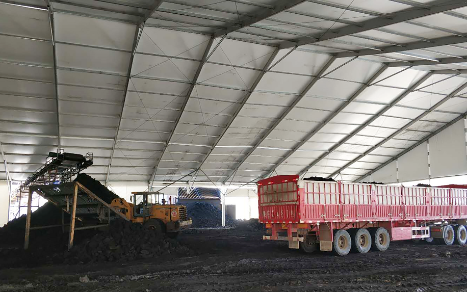 眾多周知,煤因為含有大量硫成分及其生產加工中涉及的其他化學物質,對于鋼鐵腐蝕非常明顯,傳統的密閉設施,往往短時間內就生銹、損壞,直接影響了企業的利潤水平和正常生產,倉儲篷房采用的是高耐腐蝕的篷布及高強度鋁型材,使用年限一般在10年以上,正常可以達到15年。明顯超出鋼鐵結構密閉設施壽命。