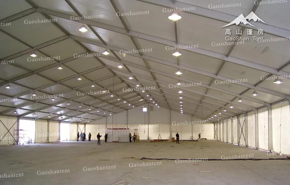 除此之外,篷房材料與結構均在工廠加工和安裝,現場直接裝配后,即可投入使用,搭建效率快。正常情況下,一天即可完成1000平篷房搭建。同時篷房在外觀上和內部配置上也是高端上檔次的一種流行的產品。