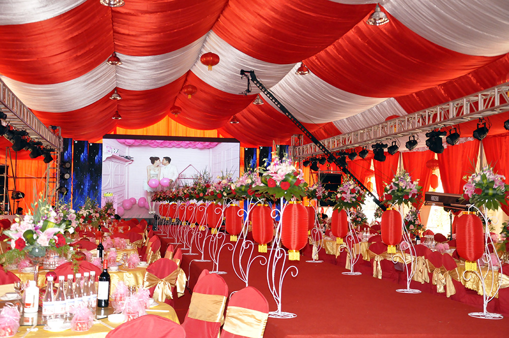 選擇在篷房舉辦婚禮,可以不受時間的限制,即白天、夜晚都可以,和酒店婚禮相比在時間上更自由。
